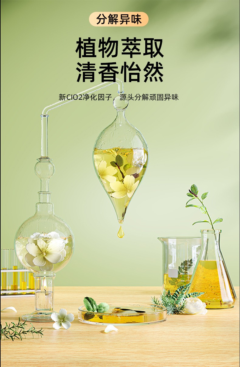 2. Gerüche zersetzen, duftenden und angenehmen neuen CI02-Reinigungsfaktor aus Pflanzen extrahieren und hartnäckige Gerüche an der Quelle zersetzen