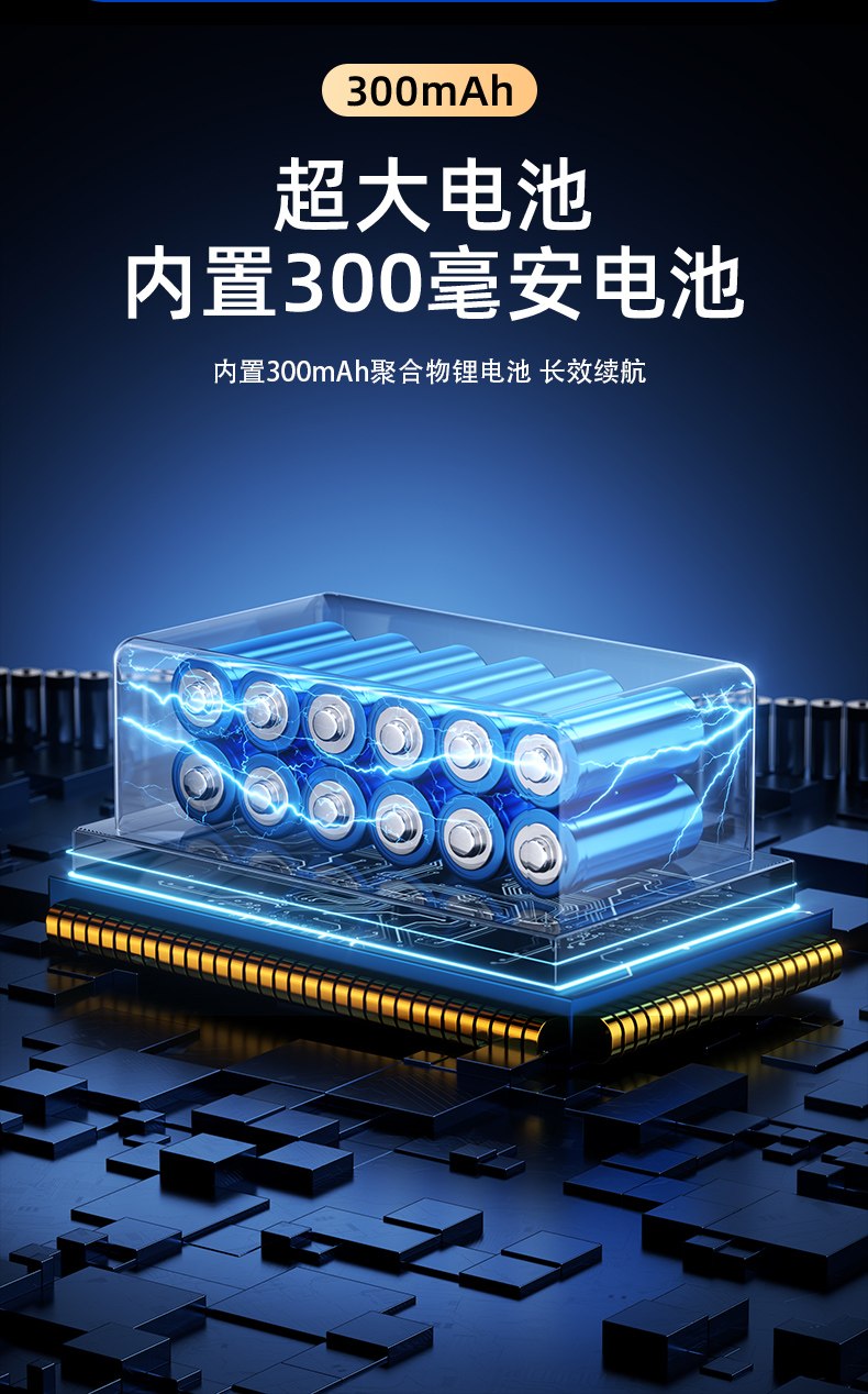 9.300 mAh großer Akku mit integriertem 300-mAh-Akku und 500-mAh-Polymer-Lithium-Akku für lange Lebensdauer