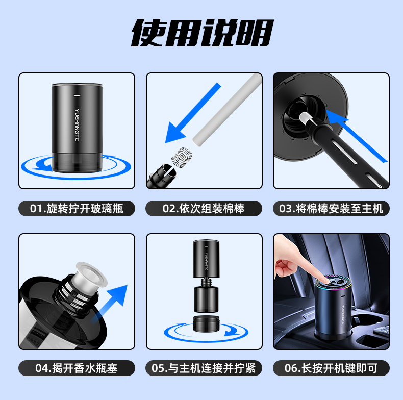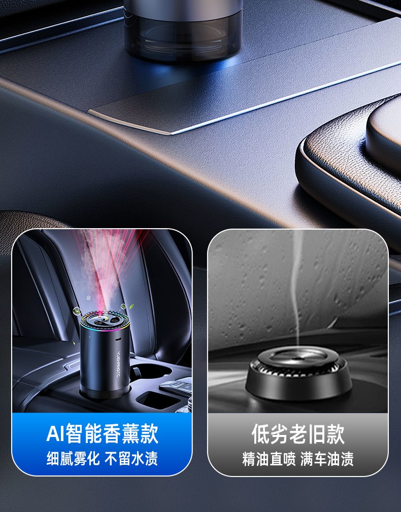7. Intelligente Erkennung Der intelligente AI-Chip erkennt automatisch den intelligenten Ultraschallchip in der Fahrzeugumgebung und zerstäubt ätherische Öle im Nanomaßstab mit einer Vibration von 2 Millionen Hertz pro Sekunde